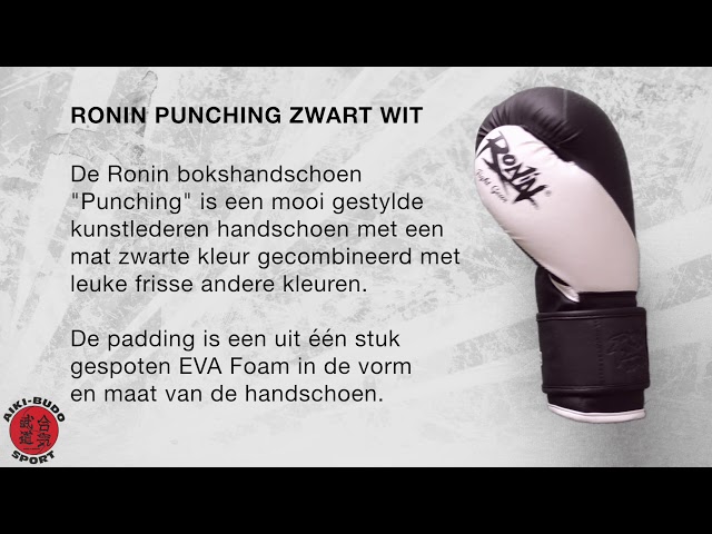 The Ronin Boxing Glove Punching is available in the sizes 4oz up till 16oz and in the following colours: black/white, black/red, black/blue and black/pink.